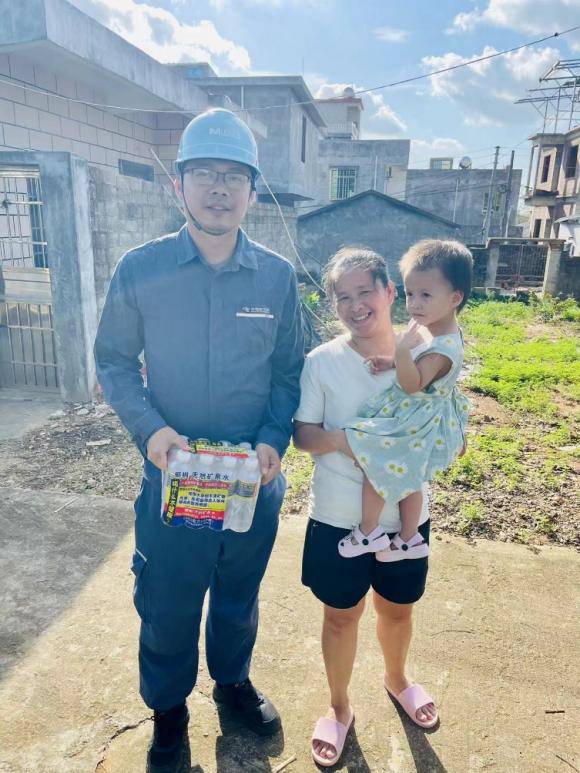 “這么熱的天你們還一直暴曬在太陽底下忙著幫我們通電,你們要多喝水防止中暑,要多吃點(diǎn)東西,不要餓著肚子干活”9月18日下午,在海南省澄邁縣金馬大道新村仔農(nóng)場的搶修現(xiàn)場,熱心的村民大姐左手抱娃右手提著礦泉水和八寶粥送到搶修人員的手中,搶修隊(duì)員跟大姐握手表示感謝。這一幕溫馨的場景,是公司搶修隊(duì)伍與當(dāng)?shù)厝罕姷摹半p向奔赴”,彰顯了電力施工企業(yè)與人民之間深厚的魚水情誼。在困難與挑戰(zhàn)面前,他們攜手并肩,共同譜寫了一曲動(dòng)人的贊歌。