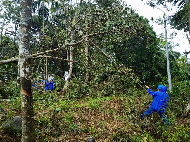 到達(dá)海南后,揭陽明利綜合能源發(fā)展有限公司支援海南抗災(zāi)搶險(xiǎn)隊(duì)在澄邁縣緊鑼密鼓開展搶修復(fù)電工作。澄邁地貌相對平整,但林區(qū)覆蓋率較高,橡膠林香蕉園廣泛分布,臺風(fēng)摩羯過境后,林區(qū)樹木倒塌壓垮電線,線路損壞嚴(yán)重。為打通線路搶修通道,加快復(fù)電進(jìn)度,公司搶險(xiǎn)隊(duì)伍一邊組織大型施工機(jī)械快速重新組立電桿,一邊組織人員及時(shí)消缺搶修,力爭以最快速度恢復(fù)線路正常供電。
